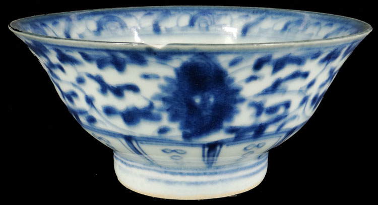 Very nice bowl with high gloss surface and well rendered, contrasty decorations with good resonance. One of the better bowls from the Desaru shipwreck. The bowl will be delivered with a Certificate of Authenticity